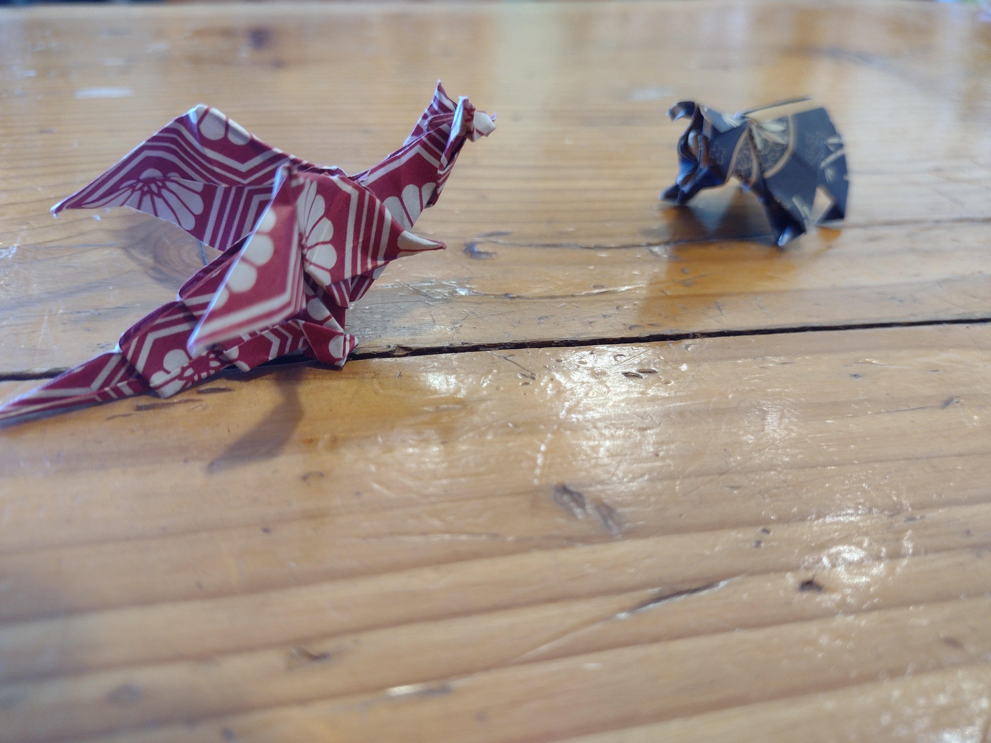 Whether you are folding traditional cranes, or more modern models (like Jo Nakashima's Dragon pictured below), Tuttle origami paper has a pattern for you. This beautiful double-sided paper is the only paper endorsed by Stick Corp. Down to the inch: Down to the centimeter: Down to the MICRON it is perfectly square. We like that... We like that a lot.