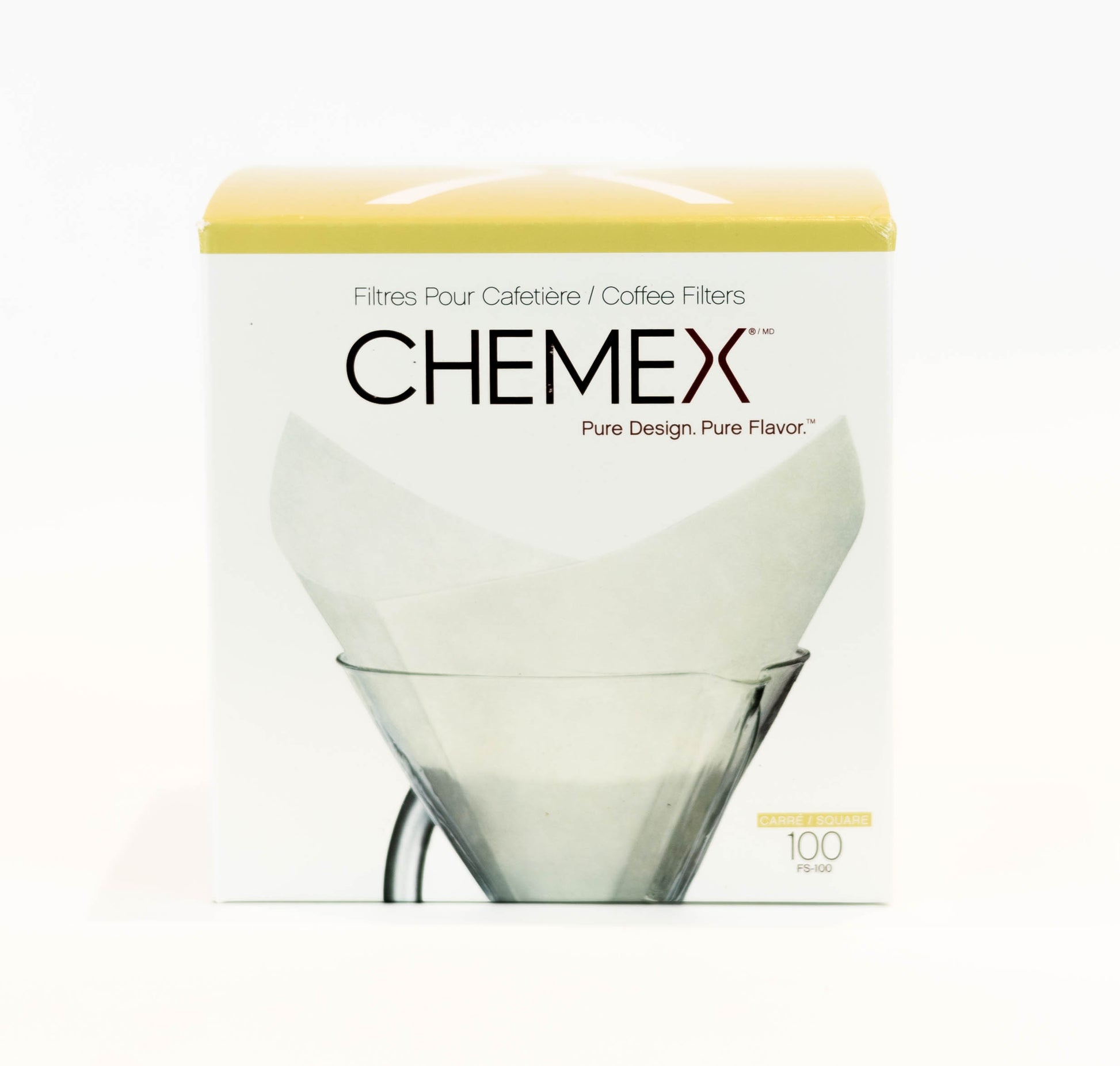 Bonded CHEMEX® Filters. Prefolded square shaped bleached filters ensures uniform extraction for pure coffee flavour. Thicker specialty fibre filter design keeps bitter elements, oils, and grounds in their place (and out of your cup). 100-pack.